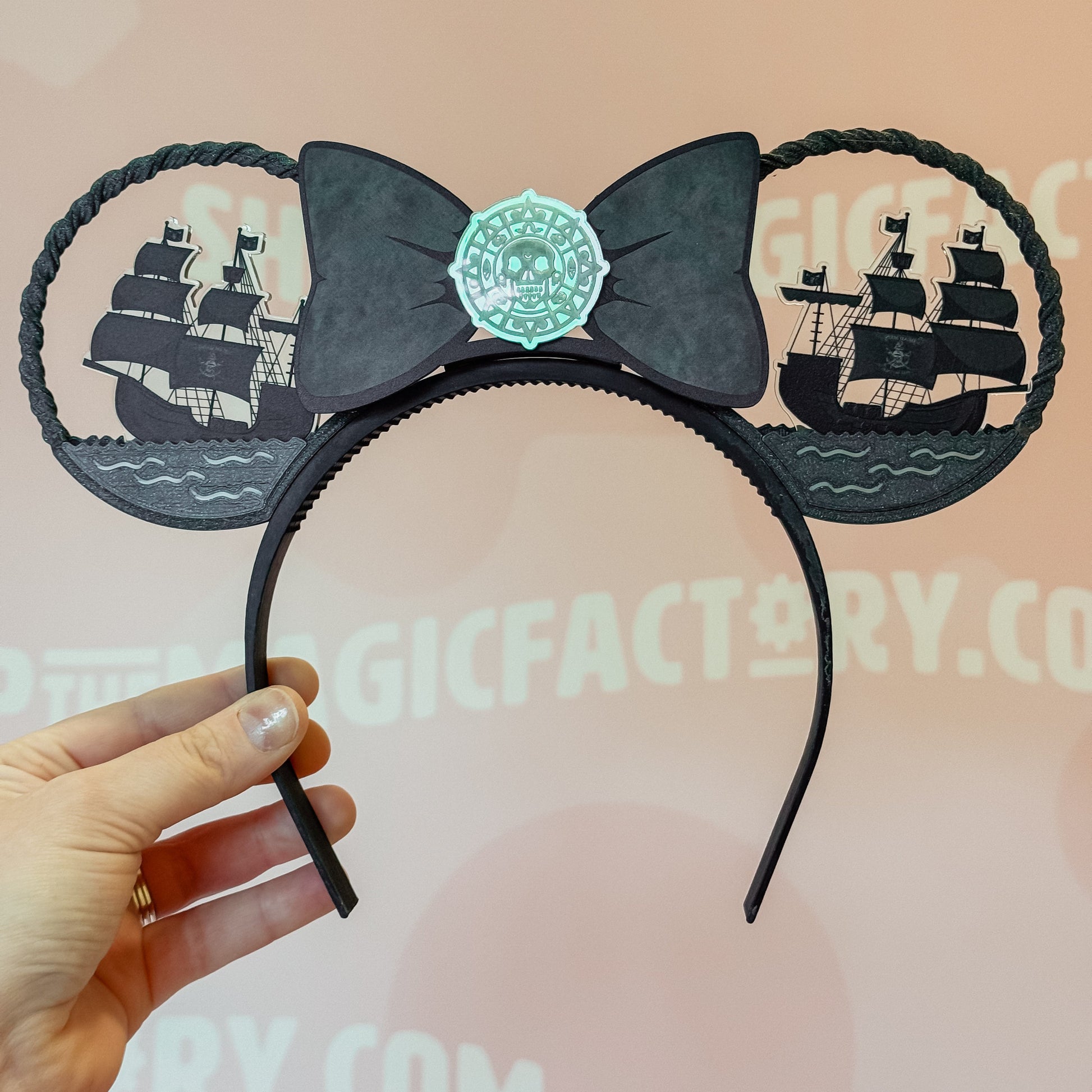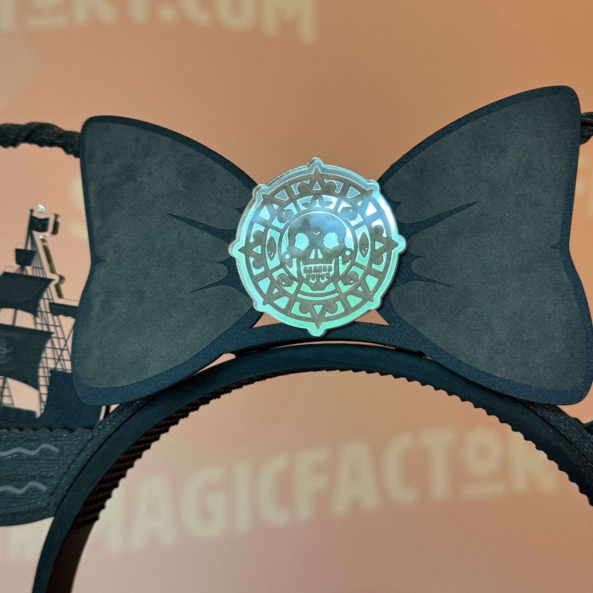 Show your pirate pride and set sail with these ears featuring tipping Black Pearls on the high seas!